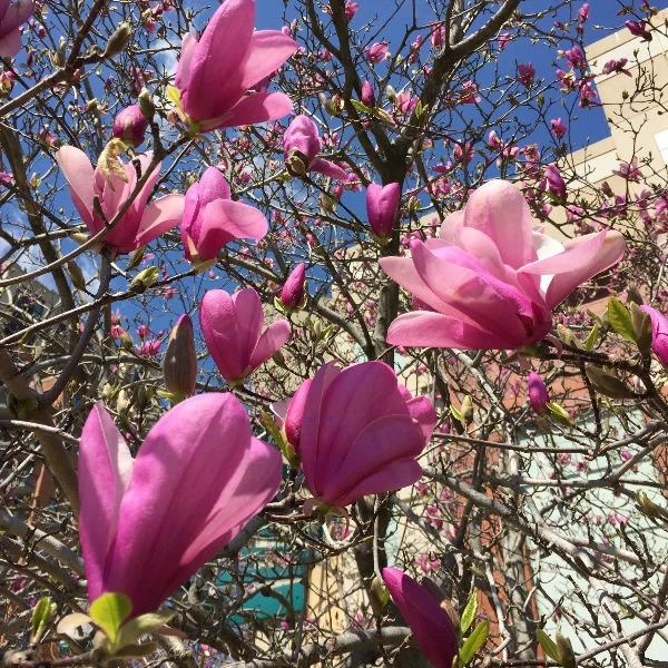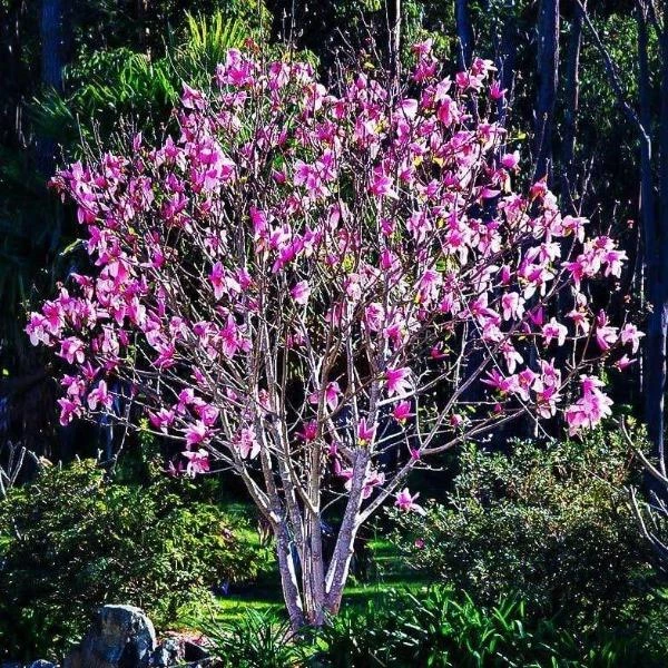 Ann Magnolia tree is a late-blooming deciduous shrub or small tree with large, fragrant reddish-purple tulip-shaped flowers that bloom before the dark green leaves arrive in late spring.