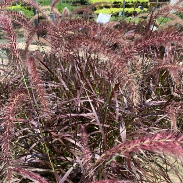 Purple Fountain Grass (Pennisetum setaceum rubrum) is an attractive ornamental grass that features dark burgundy-black foliage and purplish-pink flower spikes that last through the winter. Its green foliage is the perfect plant to use as a specimen or mass planting perennial. During the mid-summer to early fall, Purple Fountain Grass’s stunning foliage will turn a bronze-copper shade and will continue to complement other surrounding plants.