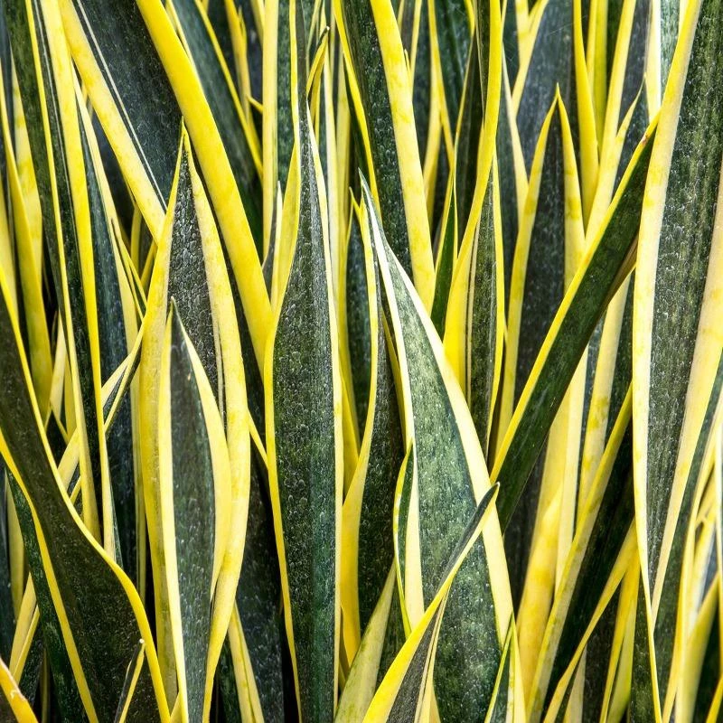 This unique Snake Plant boasts tall dark green leaves that are edged in an electric bright gold. The plant’s sword shaped foliage and vertical form makes it a piece of living décor that adds height to a space.
