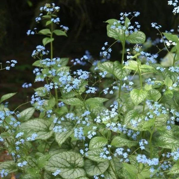 Brunnera Jack Frost commonly called Siberian bugloss or False Forget Me Not, is a clump-forming perennial that is primarily grown in shady areas for its attractive heart-shaped, dark green foliage.