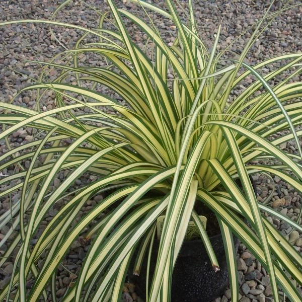 Carex Evergold is a popular variegated cultivar that is ornamentally grown in part shade areas for its arching, ornamentally attractive foliage. Each leaf features a broad, creamy, yellowish-white center stripe bordered on each side by thin narrow dark green margins.