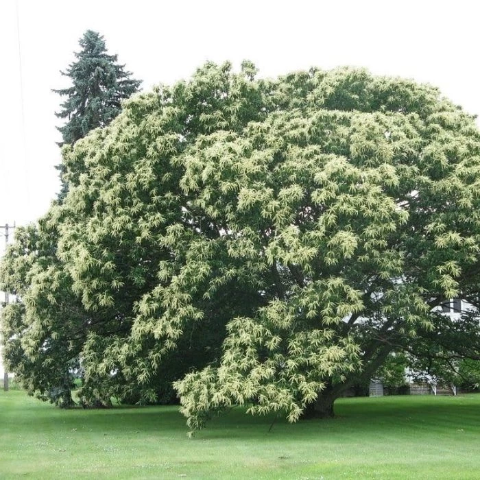 The Chinese Chestnut tree has a rounded shape tree with large leaves from urban yellow to light green. These trees are a well known plant that should be planted in pairs or in groups to safeguard pollination. A warm or humid climate is a perfect place for Chinese Chestnut to grow at a maximum rate.