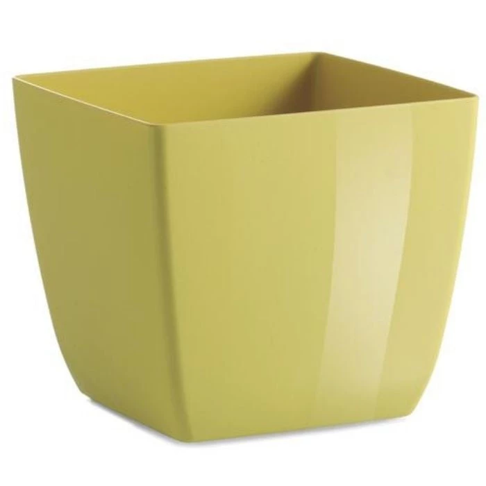 The color palette for the Kyle line of square planters includes white, nutmeg brown, sage green, and citron yellow. These colors would fit well in any sunny, bright room for a clean, modern feel.