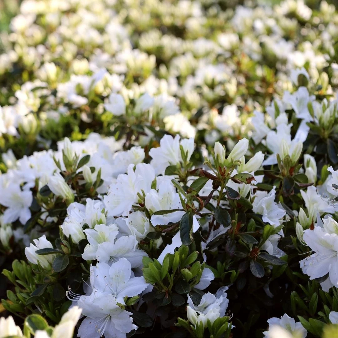 Delaware Valley White Azalea (Rhododendron ‘Delaware Valley White’) is a low-maintenance evergreen shrub that blooms in spring, summer, and fall. Its fragrant, vivid white blooms create a beautiful contrast to the deep green foliage of summer.