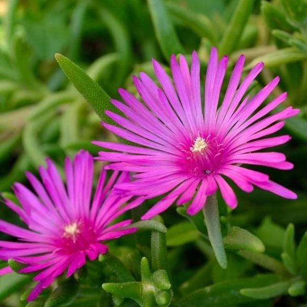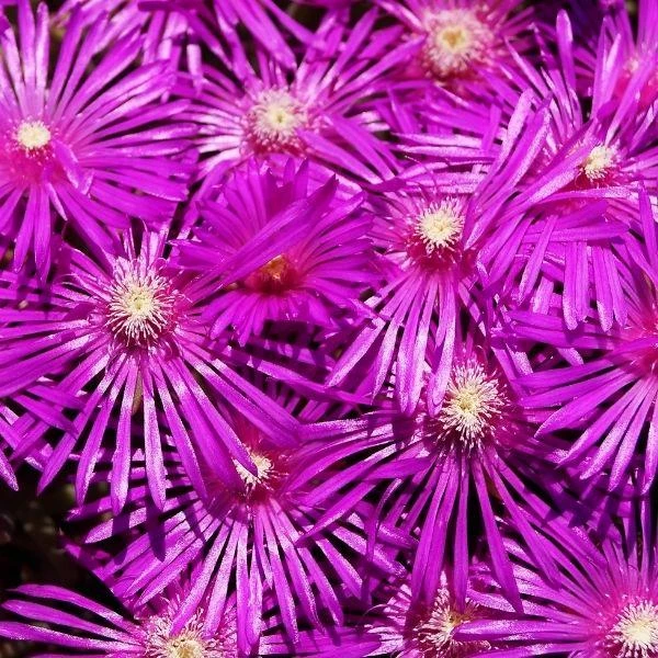 The Delosperma Cooperi, also known as Cooper’s Hardy Ice Plant is a fast-spreading, mat-forming perennial with bright, neon-colored flowers. The purple flowers are daisy-like in shape and bloom in multiple, sometimes hundreds at a time. This deer-resistant, drought-tolerant plant is stunning when planted en masse. Attracts butterflies.