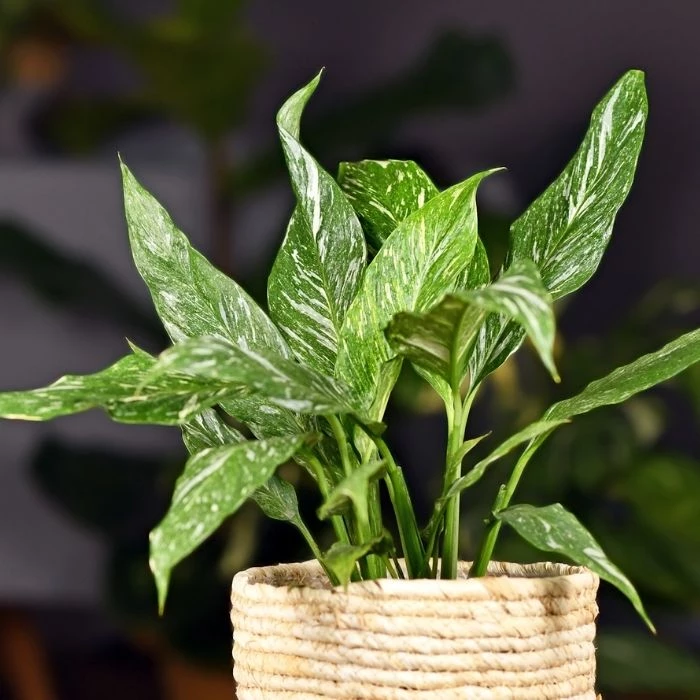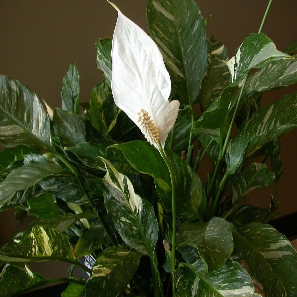 Domino Peace Lily (Spathyllums) is a uniquely variegated version of the common Peace Lily. We recommend this houseplant to any beginner plant owner because it is very hardy and easy to grow. The variegation on the leaves is a marbled mixture of white and deep green. Spathyllums are known for their air-purifying qualities and ability to remove toxins from the air. Try placing them in an office, living room, or bedroom for a beautiful pop of greenery and white flowers. Peace Lily houseplants are one of the very few houseplants that will flower indoors. The only time these plants will not flower inside is if they are kept in low light conditions.