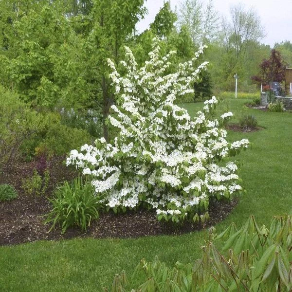 Doublefile Viburnum Shrubs (mariesii) is truly a breathtaking shrub when in bloom. Clothed in snowy white flowers in a pinwheel arrangement atop the branches in spring as if covered in snow, with attractive horizontal branching and good fall color, making it a fantastic specimen shrub.