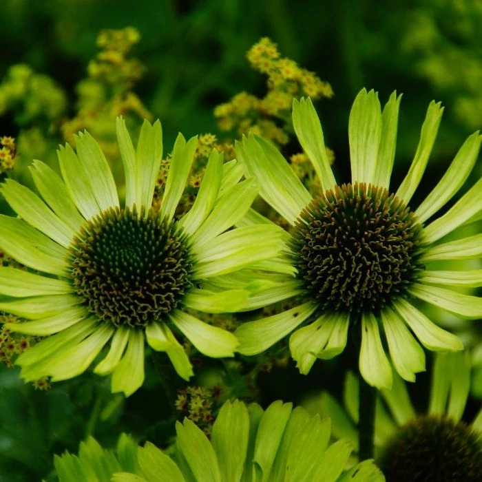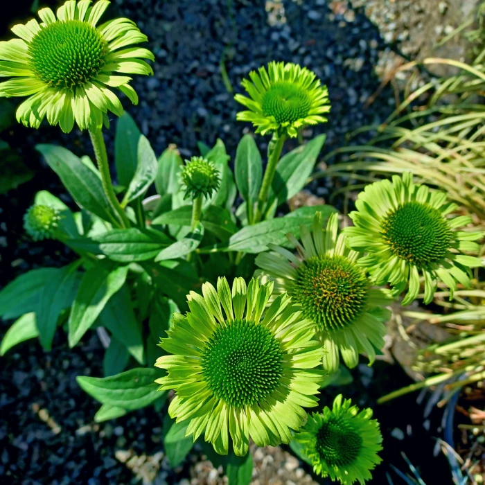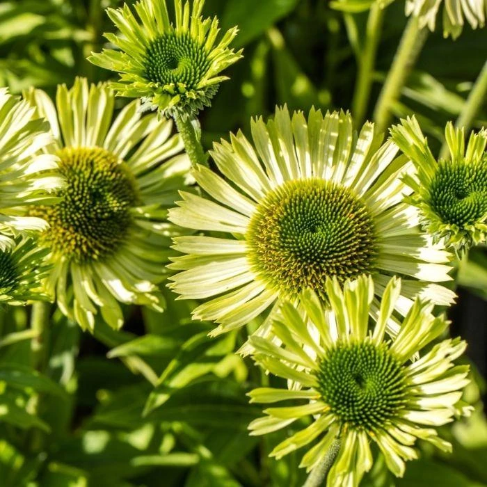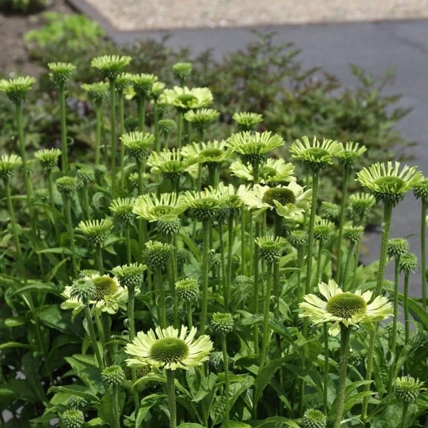 Echinacea Green Jewel is an incredibly unique Coneflower that was discovered by Piet Oudolf. The light green ray petals surround the large, green cone of this fragrant coneflower. The sturdy plants have an upright habit and only reach between 20 and 24 inches tall, so no staking is required.