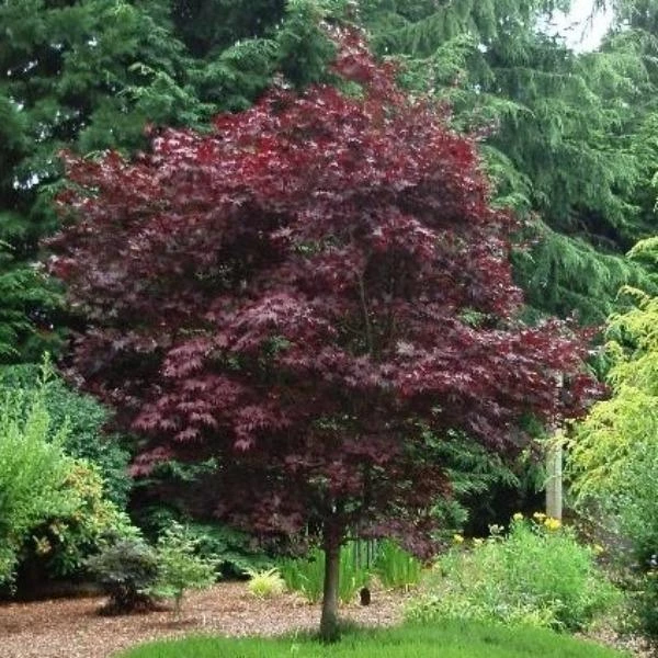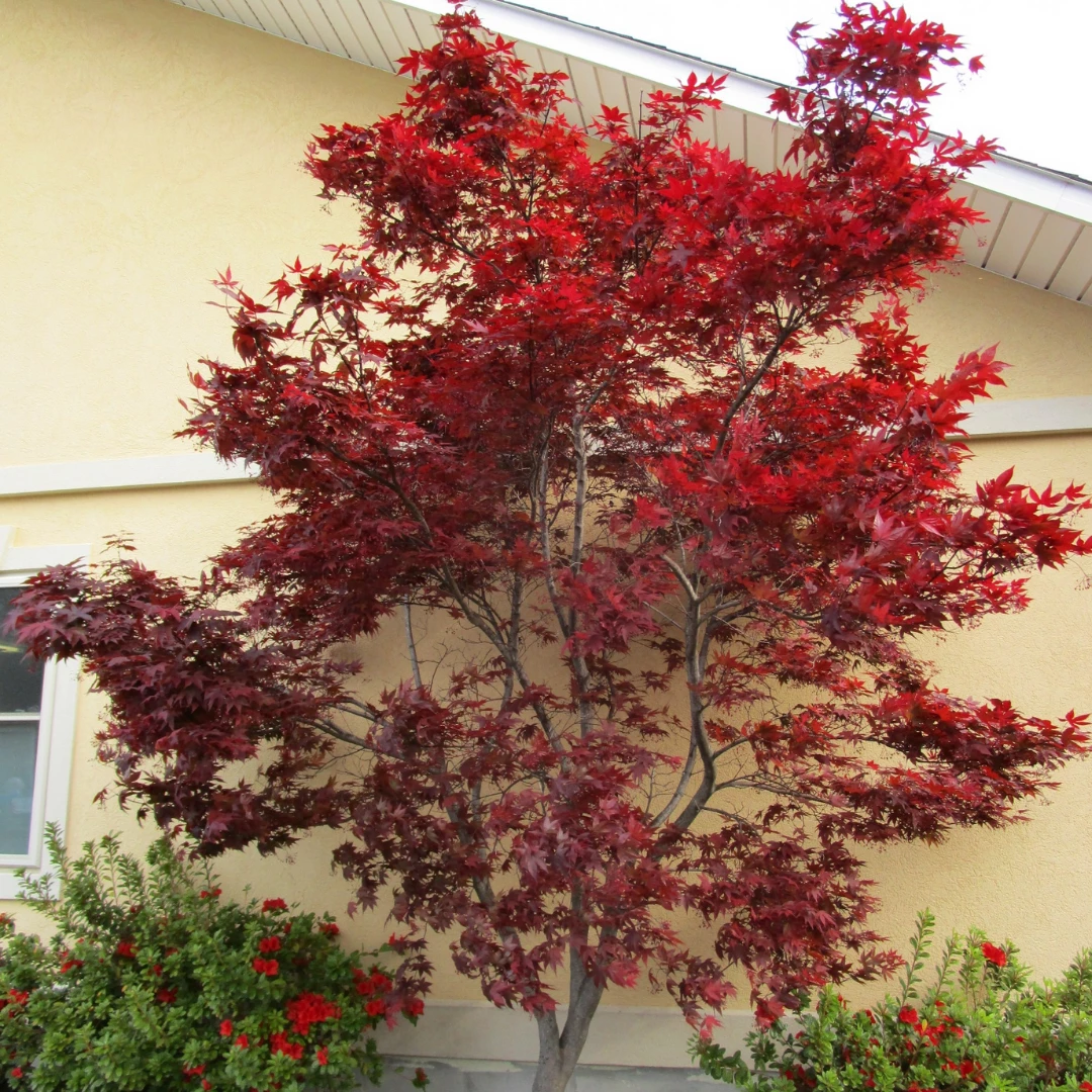 Similar to its cousin, the Bloodgood Japanese Maple, Emperor Japanese maples distinguish themselves with their shinier bright red leaves. Their leaves bud approximately two weeks later than other Japanese maples, which means they are better suited for gardens subject to late frosts. These hardy upright red maples won’t overwhelm a smaller garden: mature Emperor Japanese Maples only grow to about 15 feet tall.