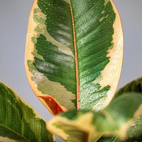 These bright variegated rubber trees enjoy bright indirect light growing conditions and can handle heavier levels of sun than most house plants. With a semi-succulent foliage, the hardy indoor plants are also extremely drought tolerant.
