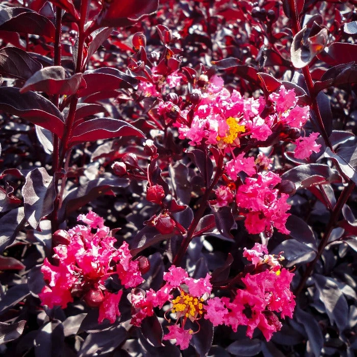 Crape Myrtle Midnight Magic™ produces superb purple-maroon colored foliage and offers loads of dark pink flowers all through the summer. Beyond it’s beauty, the popular specimen plant is loved for its small size, long bloom time and hardiness to a wide variety of conditions.