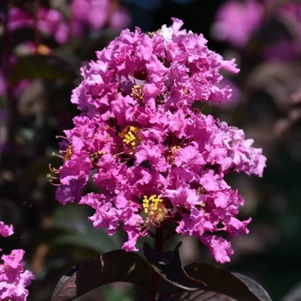Twilight Myrtle Midnight Magic™ (Lagerstroemia ‘PIILAG-VIII’) produces superb coral-pink-colored flowers and offers loads of dark purple-burgundy foliage all summer. This plant is not shy when it comes to height and width. It can grow upwards of 16 feet tall and 6 to 8 feet wide. Due to its height and showstopping colors, this plant goes best as a specimen plant or for foundation planting. If you live in mild winter areas, it can also be very effective as a screen or informal hedge.