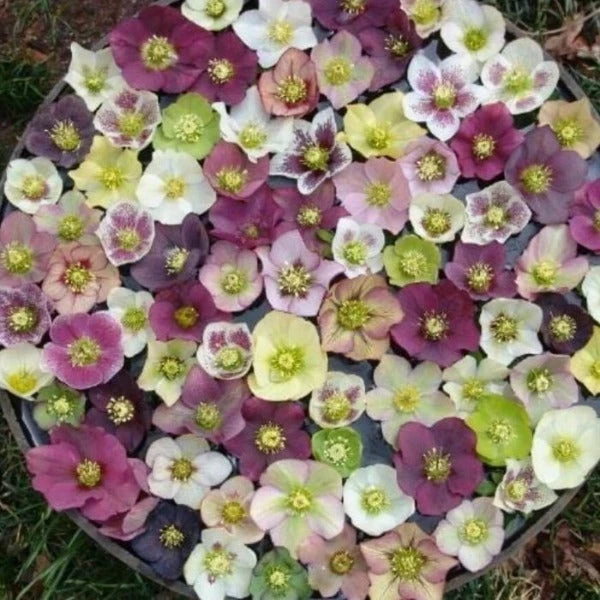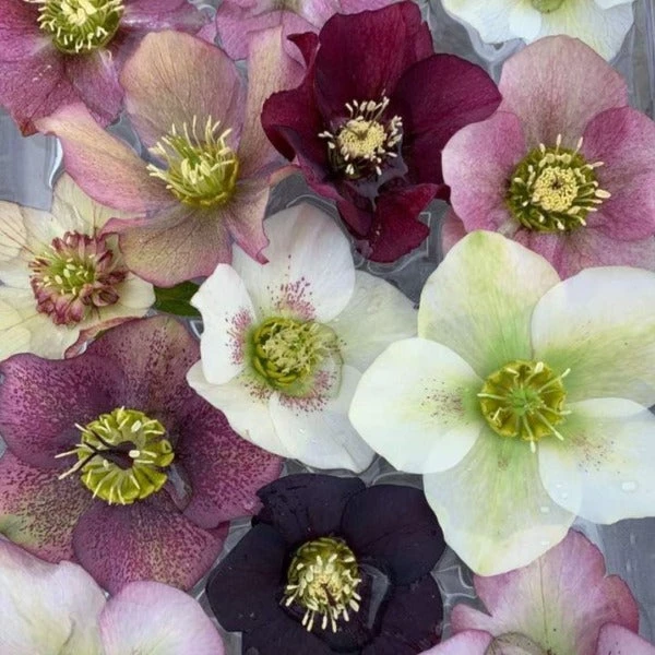 The Helleborus Pine Knot Series is a selection of unbloomed seedlings in mixed colors of the best single and semi-double hybrid hellebores. These unique winter blooming flowers were developed by Judith and Dick Tyler of Pine Knot Farms in Clarksville, Virginia. A large variety of color combinations and patterns.