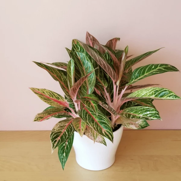 Aglaonema Sparkling Sarah is a gorgeous Chinese Evergreen plant loved for its large variegated leaves that are a dark green with fun splashes of pink throughout. People also love this indoor plant’s laidback care regimen and ability to thrive in a variety of conditions.