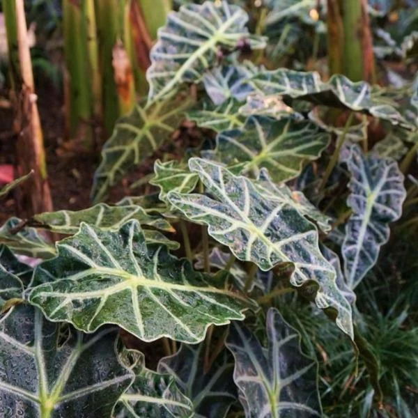 Alocasia Polly has rigid, arrow-shaped, deep green leaves complemented with bright white veins, held by ebony black petioles. When indoors, these plants love bright, indirect light or filtered sunlight. We recommend placing them near north or east-facing windows.