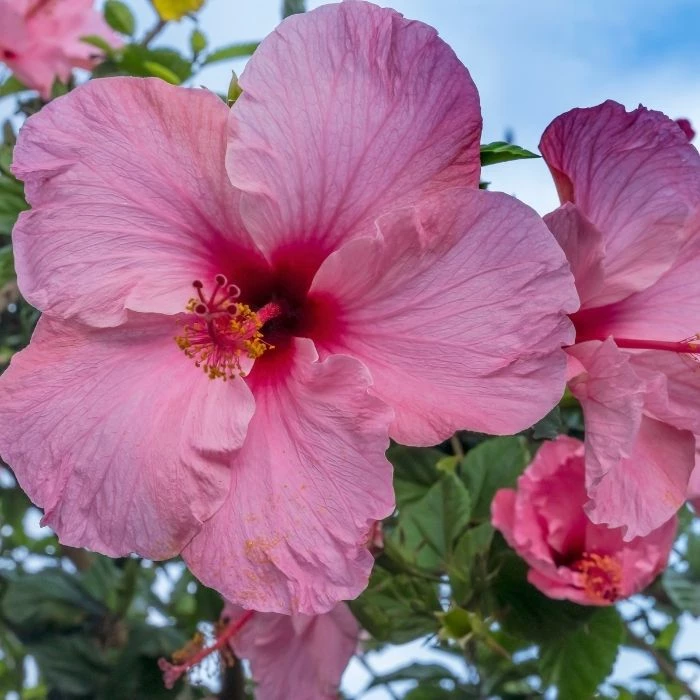 Pink Hibiscus (Hibiscus rosa-sinensis) is a tropical patio plant known for its stunning bright pink blooms. This flowering tree prefers tropical climates with full to partial sun, so place it on a sunny patio, screened-in porch, or pool deck.