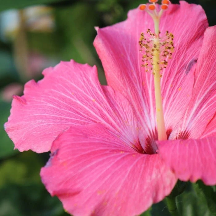 Pink Hibiscus plants can grow up to 8 feet tall and span 3 feet in their natural environment. Its bright pink flowers bloom from early summer into fall. When you buy your Pink Hibiscus Bush online, put it outside in the summertime and watch it thrive. In the winter, you can bring your hibiscus inside but since it prefers hot, moist climates, it tends not to bloom indoors.