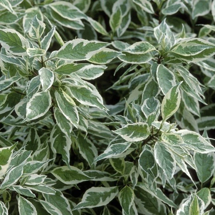 Treasured for its colorful stems, multi-colored foliage, and smaller size, the Ivory Halo Dogwood has been used to provide flare in shrub borders and mass plantings. It has brilliant red stems that provide a distinguished look throughout the fall and winter. Birds abore their bluish-white berries while pollinators are attracted to their white flowers. The Ivory Halo Dogwood can tolerate wet soil and heavy clay.