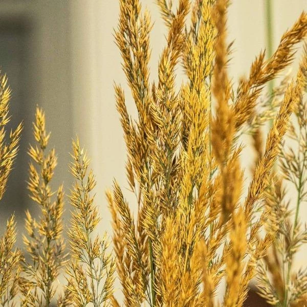In the spring, flower heads pop out of the green leaves and look like a grain plant. These reddish-brown feathery plumes gradually turn golden throughout the fall season. These are beautiful as cut and dried flowers and last well after the frost sets in.
