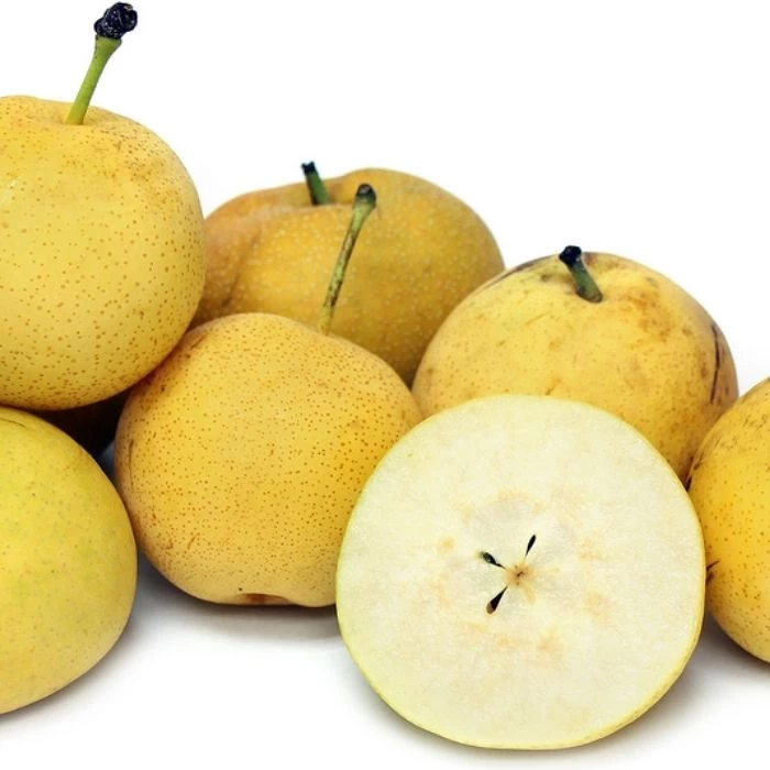 The Kikusui Asian pear, also known as the floating chrysanthemum asian pear, is known for its sweet-tart flavor and the flat, chubby fruits. The flesh is creamy white, sweet with just a touch of tartness, and quite firm. The skin is very delicate and bruises easily so this pear doesn’t have a good reputation shipping, which is why you’ll rarely see this jewel in the grocery stores.
