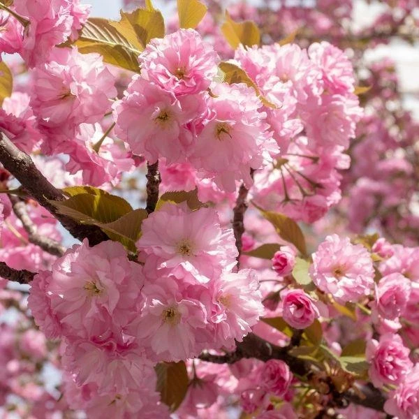 Kwanzan Cherry Trees are lovely specimen trees that put on an incredible early spring show with masses of large, deep pink, double blooms highlighted by the bronze-red new growth. The Kwanzan produces the fullest of pink blooms compared to its Cherry Tree cultivar, and is one of the easiest flowering trees to grow.
