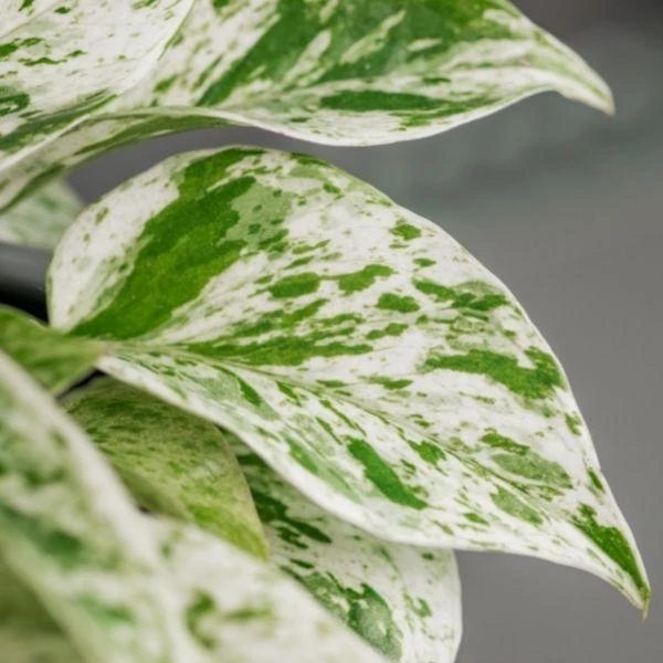 As a sister to the Golden Pothos plant that sports gold and green variegated foliage, the Marble Queen has a very similar appearance. The plant shares the same heart-shaped emerald green leaves as the golden. But they differ in that the Marble Queen boasts green and creamy white variegated leaves instead of gold.