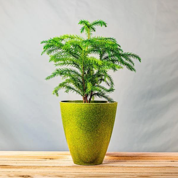The soft, symmetrical needles curve slightly downwards and grow from the container lid to the top of the plant. Norfolk Island Pines do not take well to being transplanted and are typically grown as several plants in the same container. As the plant matures, you will want to separate the plants into separate containers to avoid having the plants compete for soil nutrients.