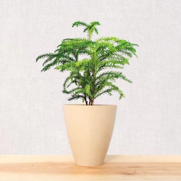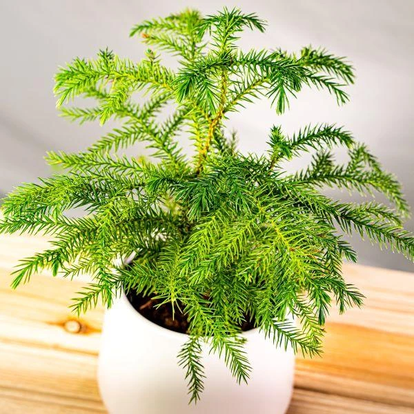 Norfolk Island Pine (Araucaria heterophylla) is a tropical house plant that doubles in style as a holiday tree. The smaller Norfolk Island Pines are perfect for decorating mantles, tabletops, and desks. As they grow and become taller, they are better situated as a floor plant.