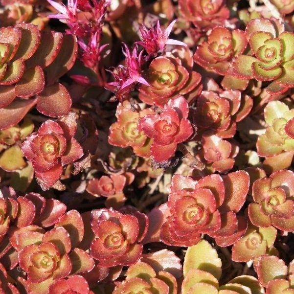 Although the colorful foliage makes this sedum stand apart, the flowers are equally as beautiful. In the summer, flower buds emerge a brilliant red color, rising up just a few inches above the dense mat foliage. Then in no time, electric pink blossoms burst through adding even more color to this impressive plant.