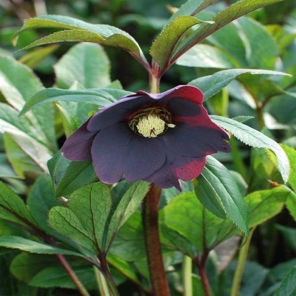 Viv Victoria Helleborewas bred to begin flowering in the fall. Victoria tolerates full sun in northern climates, unlike its cousins. The genes of Helleborus niger make it very hardy in cold climates, while the genes of Helleborus Orientalis are responsible for its very early bloom time.