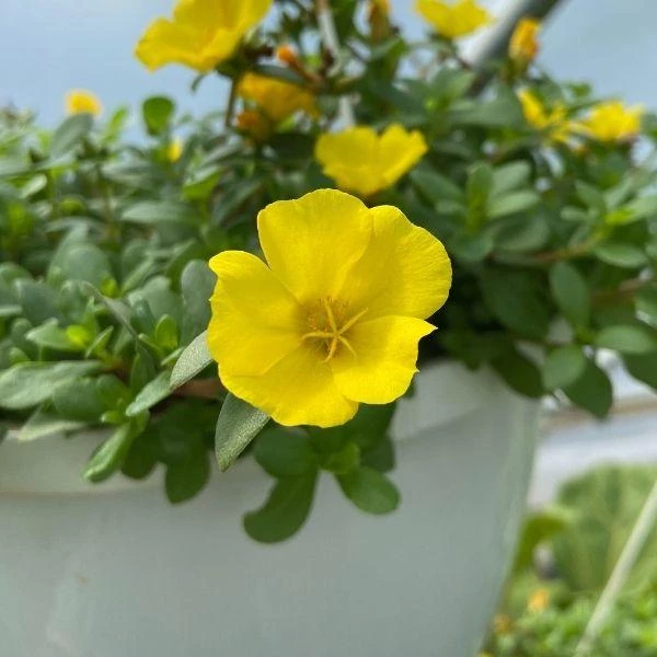 Portulaca Yellow is a non-stop yellow blooming, annual plant that sports large blooms highlighted by the shiny-green succulent leaves. Portulaca or “purslane” are spreading plants that are best suited for hanging baskets, window boxes, or as the spiller in mixed container plantings.