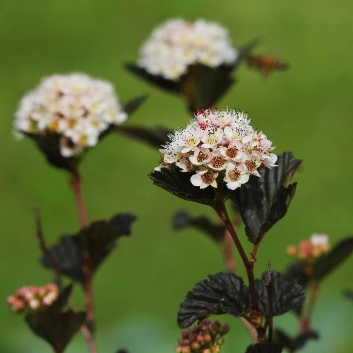 The hardy garden plant sports graceful, arching branches that grow stunning deep purple foliage that some may even describe as a deep wine color. The late spring bloomer adds beautiful color and vibrancy to your garden that make for a grand statement. In early June, the Ninebark hybrid blooms with small white flowers that accent the leaves nicely.