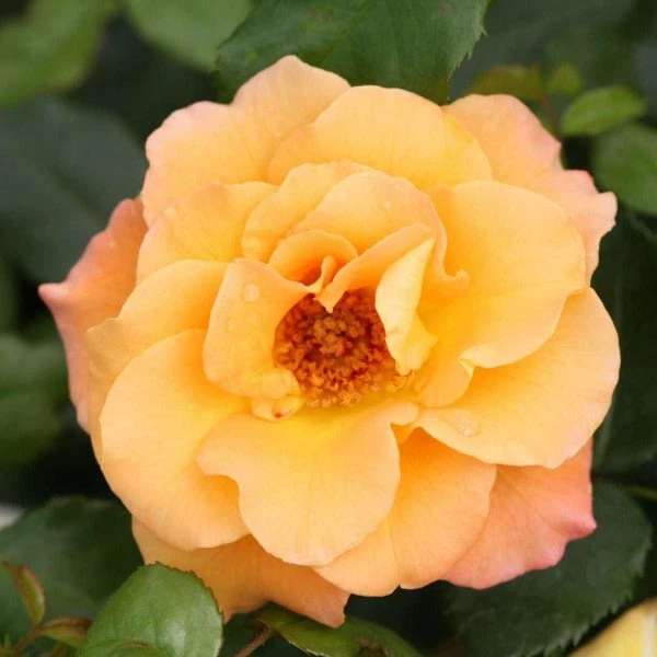 The Sunorita Rose is an elegant shrub rose that produces buds that are red-orange and open to reveal a soft orange flower that is composed of several dozen petals. As the flowers age, they develop a golden tone. The deep green leaves that cover this sturdy, medium-sized plant easily resists common rose diseases like black spot and powdery mildew.