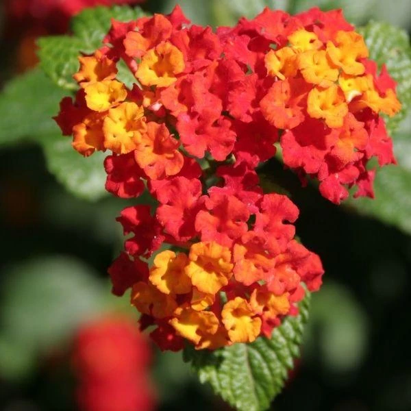 Red Lantana plants bloom from spring to fall as annuals in all hardiness zones except for 9-11, where they can live as perennials. These flowers open as a dark yellow, fade into a deep orange and finish as a deep chocolatey-red color. They are compact enough to use as container plants and can also look great as compact mounding plants in any landscape.