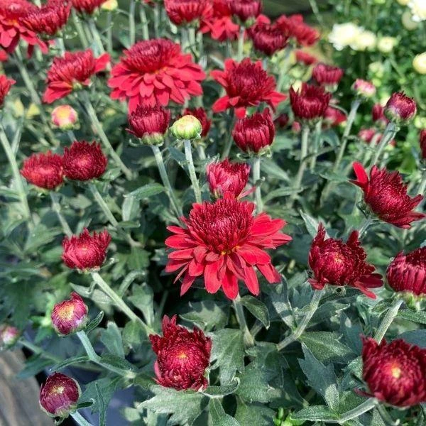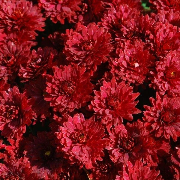 Red Mums are a must for the late summer and fall garden. This color red is easily blended with other fall colors. Chrysanthemums reliably deliver a burst of bright sunny color.