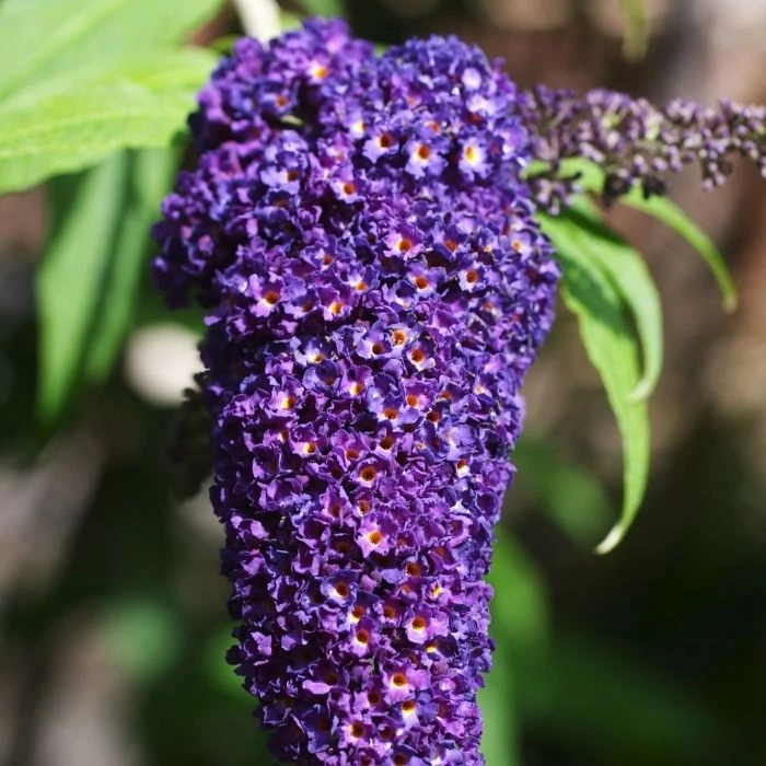 Black Knight Butterfly Bush (Buddleja davidii ‘Black Knight’) is a pollinator shrub that provides loads of color from the lightly fragrant, dark purple flower spikes that almost appear as black flowers. These fragrant flower clusters that bloom in mid-summer attract butterflies and hummingbirds along with other friendly bugs and birds.