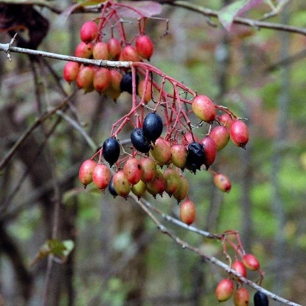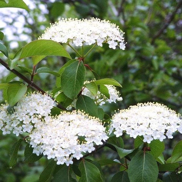 Black Haw Viburnum (Viburnum prunifolium) is a deciduous flowering shrub clothed in snow-white fragrant flowers when in bloom. It is a multi-stemmed shrub with attractive horizontal branching and good fall color. Blackhaw Viburnum blooms 2-4″ white flowers in spring and shortly after the blooms appear, the flowers transition to pink and purple berry-like drupes. The serrated bright green leaves turn an outstanding purple-red in the fall, giving this viburnum year-round interest. It is easy to care for and should be pruned after flowering to ensure new buds form for the next season. Its fragrant flowers and berries attract wildlife to your yard, but deer tend to look the other way.