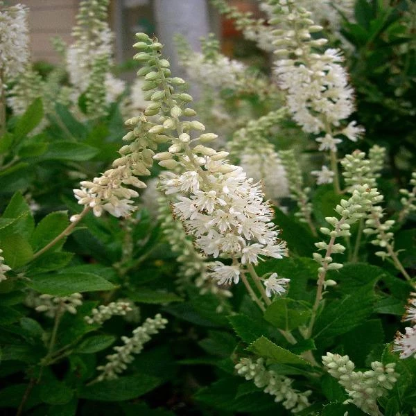 Clethra Hummingbird is a pollinator-friendly shrub that produces a plethora of white flowers for several months in mid to late summer when little else is blooming. It stands apart from the other Summersweets in that its blooms are especially compact and fragrant, attracting butterflies and hummingbirds. The glossy round leaves turn an outstanding harvest gold in the fall. They need moist acidic soil, do not let the soil dry out. Some suckering may occur but can be left to achieve a natural look.