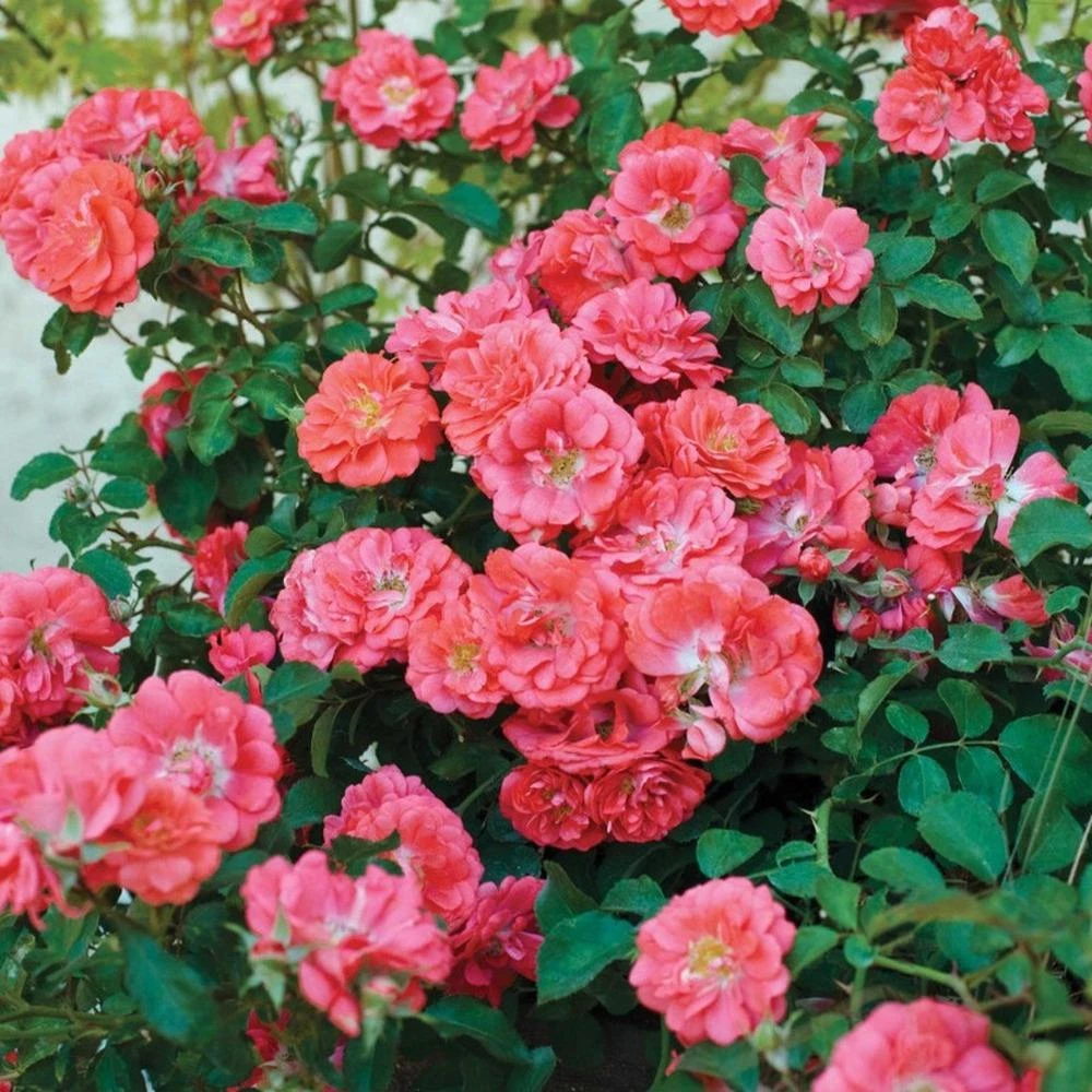 Coral Drift Rose Bushes (Rose Rosa Meidrifora) feature bright coral orange blooms that exude passion and warmth. These popular groundcover shrubs make for a beautiful garden addition and breath life and beauty through the seasons.