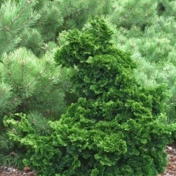 Dwarf Hinoki Cypress grows well in both sunlight and shade. Growing slowly to only 2-3 feet tall, this well-behaved cypress requires little to no pruning. Given its Asian origins, this slow-growing plant is a great staple for oriental gardens, rock gardens, or serving as a good foundation plant.
