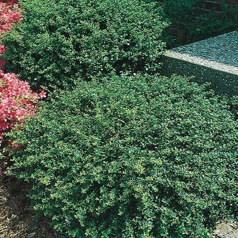 Japanese Helleri Holly is an easy-to-grow Deer resistant evergreen shrub that can be trimmed to a perfect hedge or left unpruned. When left in its unpruned state, it develops into an almost perfect mound shape.