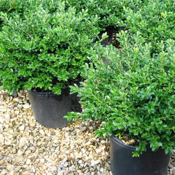 Hoogendorn Holly is a slow-growing member of the Japanese holly Family known for its compact mounded habit and cold-hardiness. Its dense, shiny green leaves resemble a Boxwood, and it’s an excellent choice for foundations, borders, or low hedges.