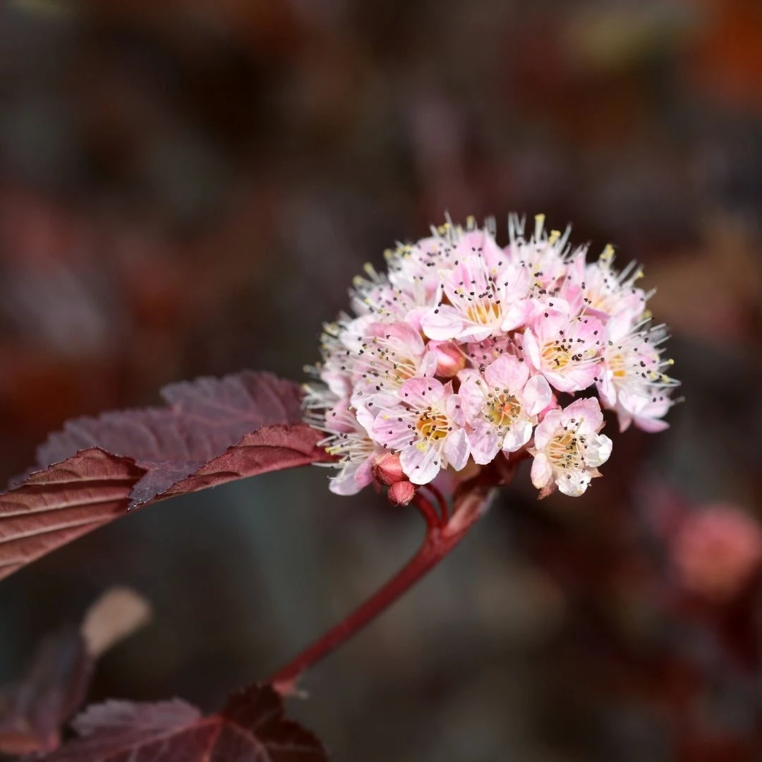 Tiny Wine Ninebark is a more compact ninebark plant, with small, refined leaves. The bronze-maroon foliage is colorful all season and creates a wonderful backdrop for the white flowers in late spring.