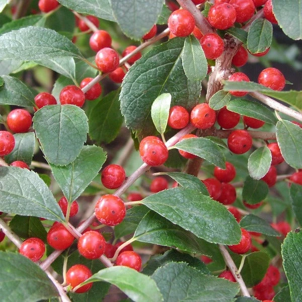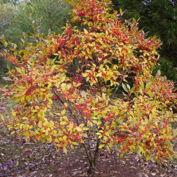 Sparkleberry Winterberry produces bright red berries that appear late summer and remain on the plant well into winter. Typically these berry-laden branches are cut and brought inside for holiday decorations. In the spring, the new foliage emerges a glorious red color changing to green. In the fall, the leaves turn a golden yellow color before ending up a pleasing bronze-red color.
