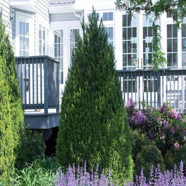 The trees have a naturally pyramidal form and minimal pruning is required. Closely resembling boxwood shrubs, the Steeds Holly shrubs have shiny dark green foliage, small white flowers and black berries that persist through the winter.