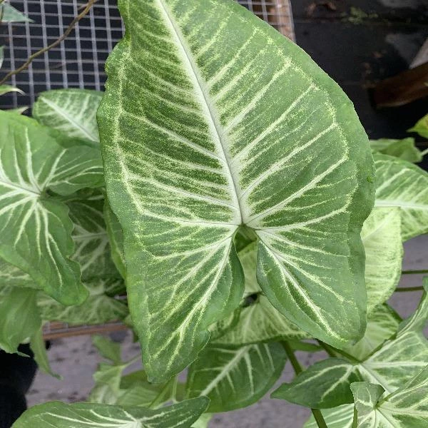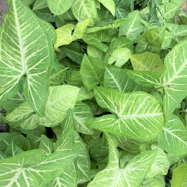 Syngonium White Butterfly is content in very small containers and usually has disproportionately more foliage growth compared to root growth. The heart-shaped leaves are mixed white and green, and the plant takes on a vining habit once it reaches maturity. Thankfully if a compact bushy plant is preferred, Syngonium White Butterfly can be trained to stay small and compact.