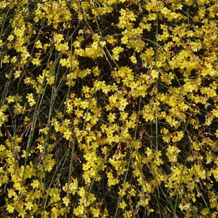 Think of Winter Jasmine as an even earlier blooming Forsythia. Winter jasmine blooms a full 6 weeks earlier than forsythia.